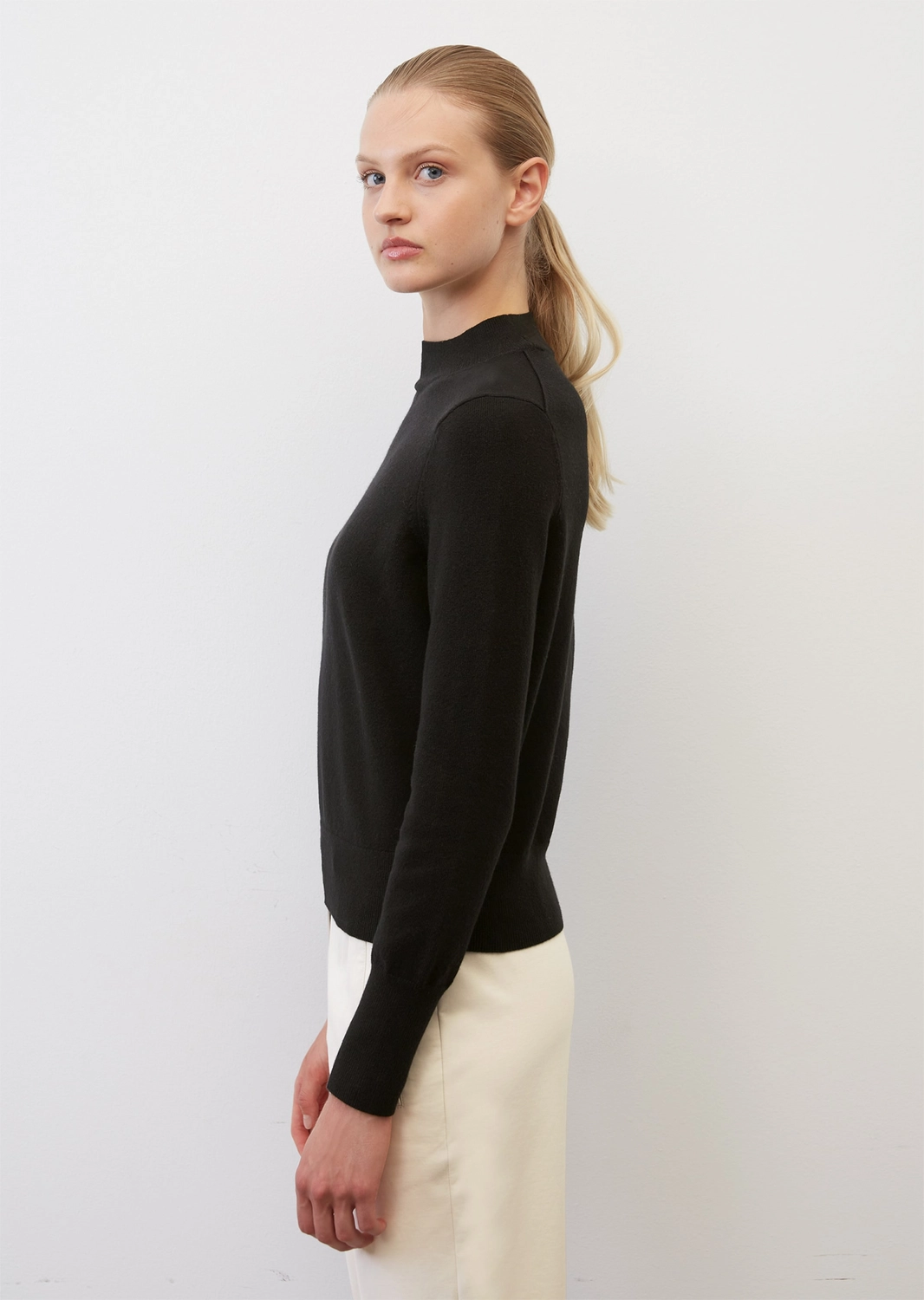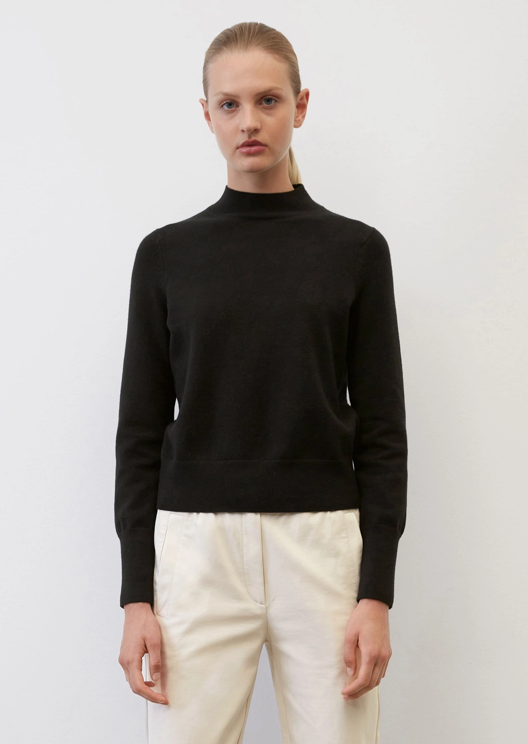 Deze fijne en modieuze pullover is afkomstig van het bekende merk Marc O’Polo. De pullover is gemaakt van katoen met wol en stretch. Dit maakt het een zeer elastisch en comfortabel breisel. Daarnaast is het kreukarm en warm dankzij de slimme mix van katoen, scheerwol, polyester en elastaan. Deze gebreide pullover is een elegante allrounder met een mooie vrouwelijke slim fit en een halfhoge opstaande kraag. Bovendien zijn de mouwen en zoom voorzien van fijn geribde boordjes voor een comfortabele pasvorm.
