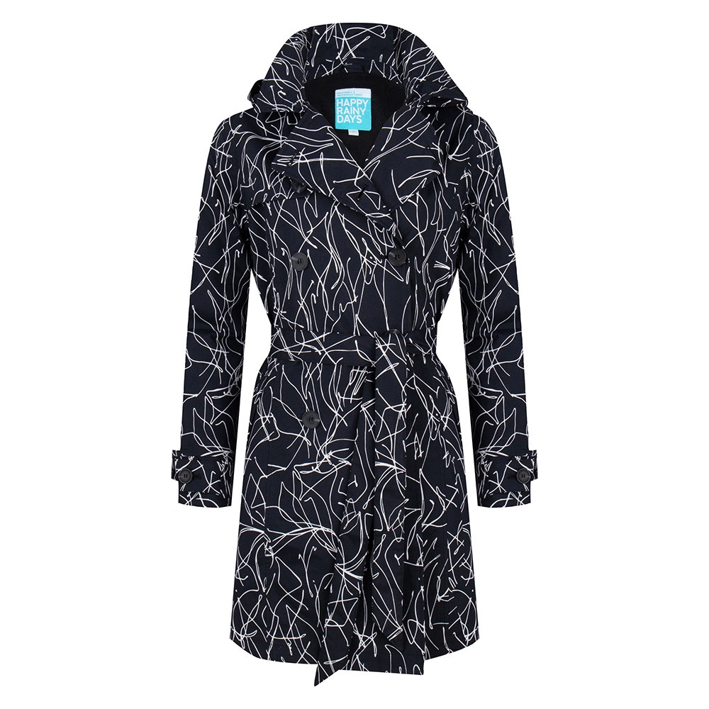 De prachtige Trenchcoat regenjas komt uit de collectie van het merk Happy Rainy Days. De jas heeft een shell die vervaardigd is van 100% nylon, de 100% katoenen voering zorgt voor extra draagcomfort. De jas is voorzien van een speciale coating waardoor de jas winddicht, volledig waterdicht en tegelijkertijd goed ademend is. De jas is voorzien van getapete naden waardoor waterdichtheid over de gehele jas is gegarandeerd. De trenchcoat is voorzien van een regular fit pasvorm en valt tot boven de knie. De jas heeft een elegante ceintuur waarmee u de taillering naar eigen wens kunt aanpassen. De jas heeft een afneembare en verstelbare capuchon en is aan beide zijkanten voorzien van diepe steekzakken. De jas is mooi afgewerkt door de dubbele rij knopen waardoor de jas een elegante uitstraling krijgt.