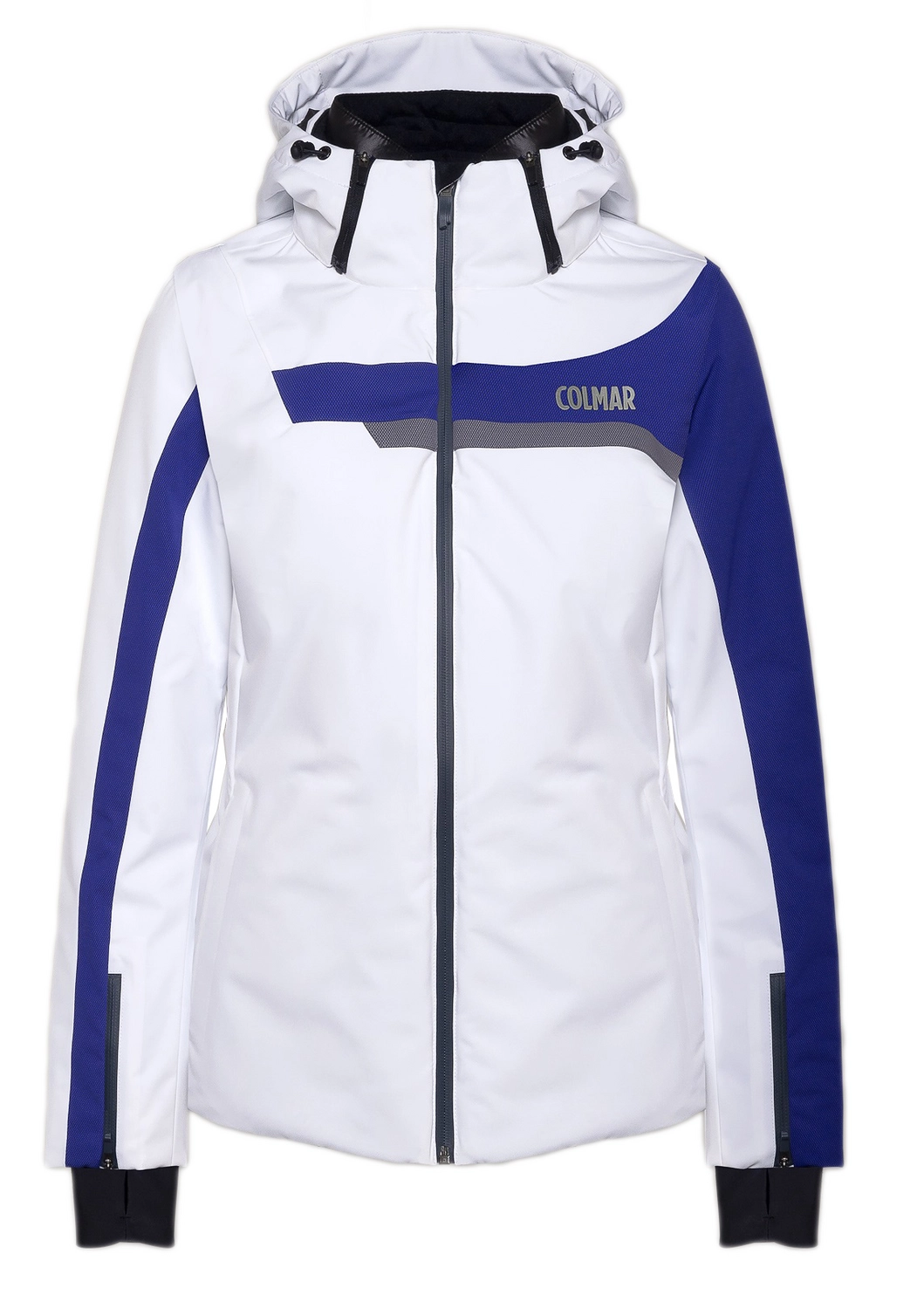 Deze zeer luxe en comfortabele ski jas voor dames van kwaliteitsmerk Colmar is een perfecte jas om te dragen tijdens uw afdalingen van de piste deze winter. De jas is heerlijk warm en gemaakt van robuuste materialen. De jas is volledig waterdicht en zeer goed ademend. De ruime capuchon en de manchetten zijn eenvoudig verstelbaar waardoor de jas naar uw eigen wensen te dragen is. De capuchon is zo ontworpen dat u eenvoudig een skihelm onder de capuchon kan dragen. Voor extra bescherming zijn de naden van de jas geseald.