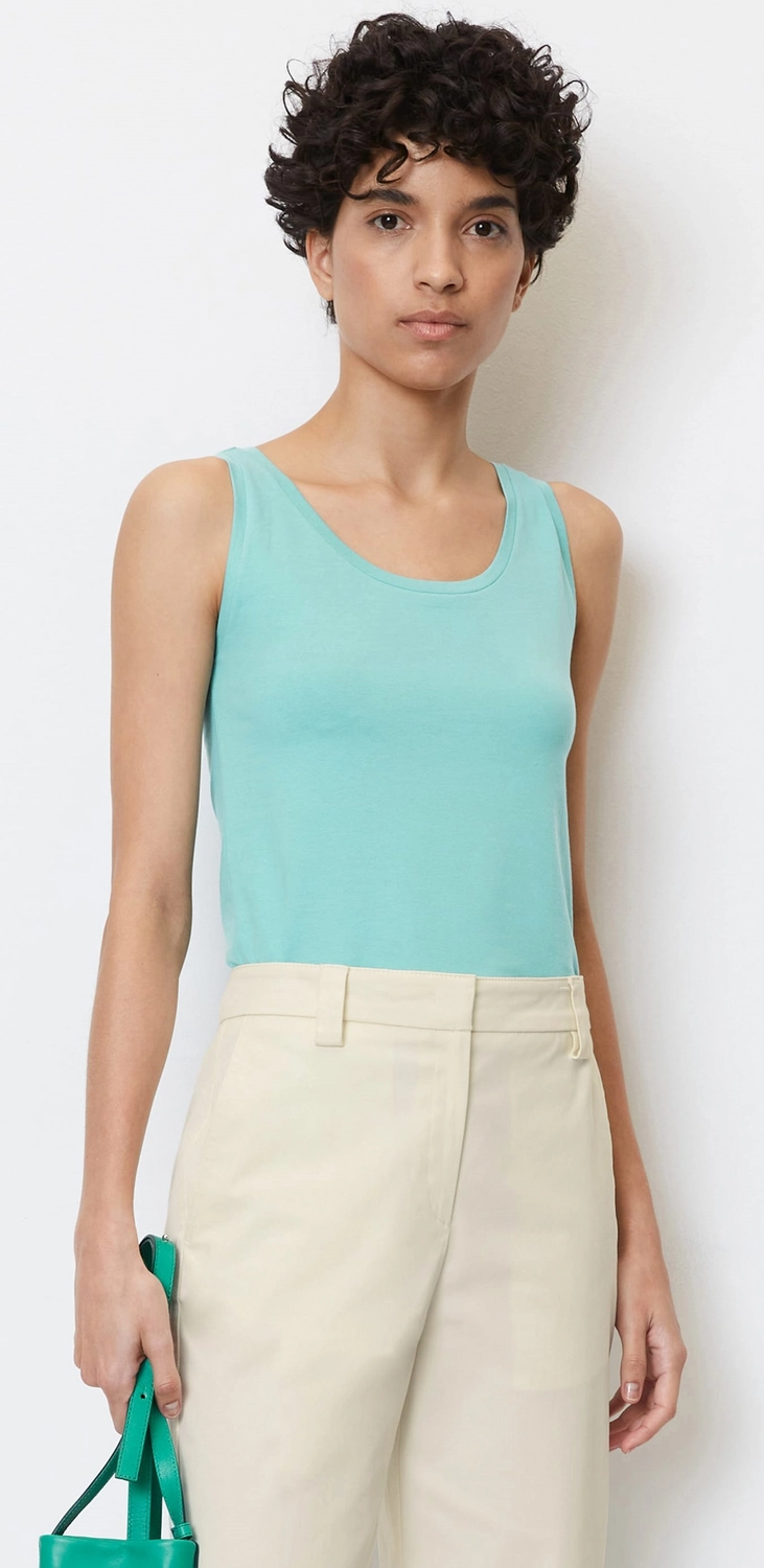 Deze elegante tanktop van Marc O’Polo is een must-have voor elke vrouw. Het model is vervaardigd uit 96% katoen en 4% elastaan en heeft een gewicht van 80 gram. De pasvorm is slim fit en het materiaal is ultra-zacht. Daarnaast heeft de tanktop een vrouwelijke wijde ronde hals, een rechte zoom en is de tanktop eenvoudig te combineren. Het klassieke en casual design is geschikt voor dames en heeft het GOTS-keurmerk. Laat u verleiden door deze kwaliteitsvolle tanktop en geniet van een stijlvolle look.