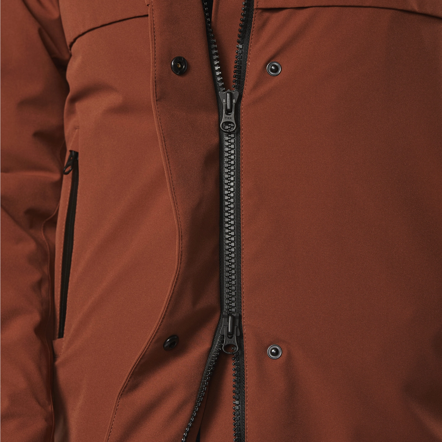 Deze warme en comfortabele winterjas is afkomstig van de Boston serie van het merk Happy Rainy Days. De jas gemaakt van 100% polyester en is waterdicht, winddicht en ademend. Hierdoor blijft u comfortabel terwijl u goed beschermd bent tegen de elementen. De jas heeft een warme wintervoering die u lekker warm houdt tijdens de koude dagen. Daarnaast is de jas voorzien van stretch, waardoor u voldoende bewegingsvrijheid heeft. Verder is de jas voorzien van een verstelbare capuchon en een tweezijdige rits. Hierdoor is de jas ook ideaal voor op de fiets. Bovendien hebben de zakken van de jas waterdichte ritsen.