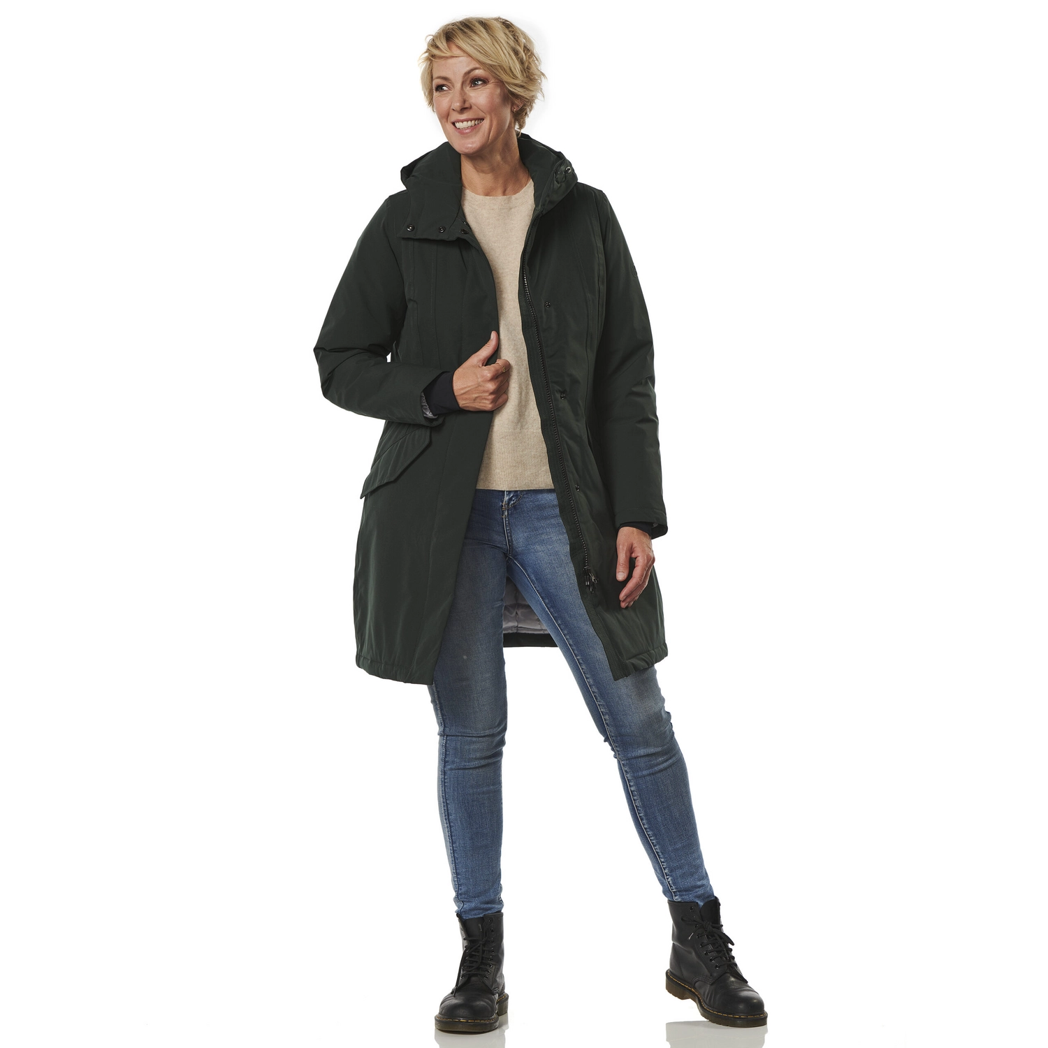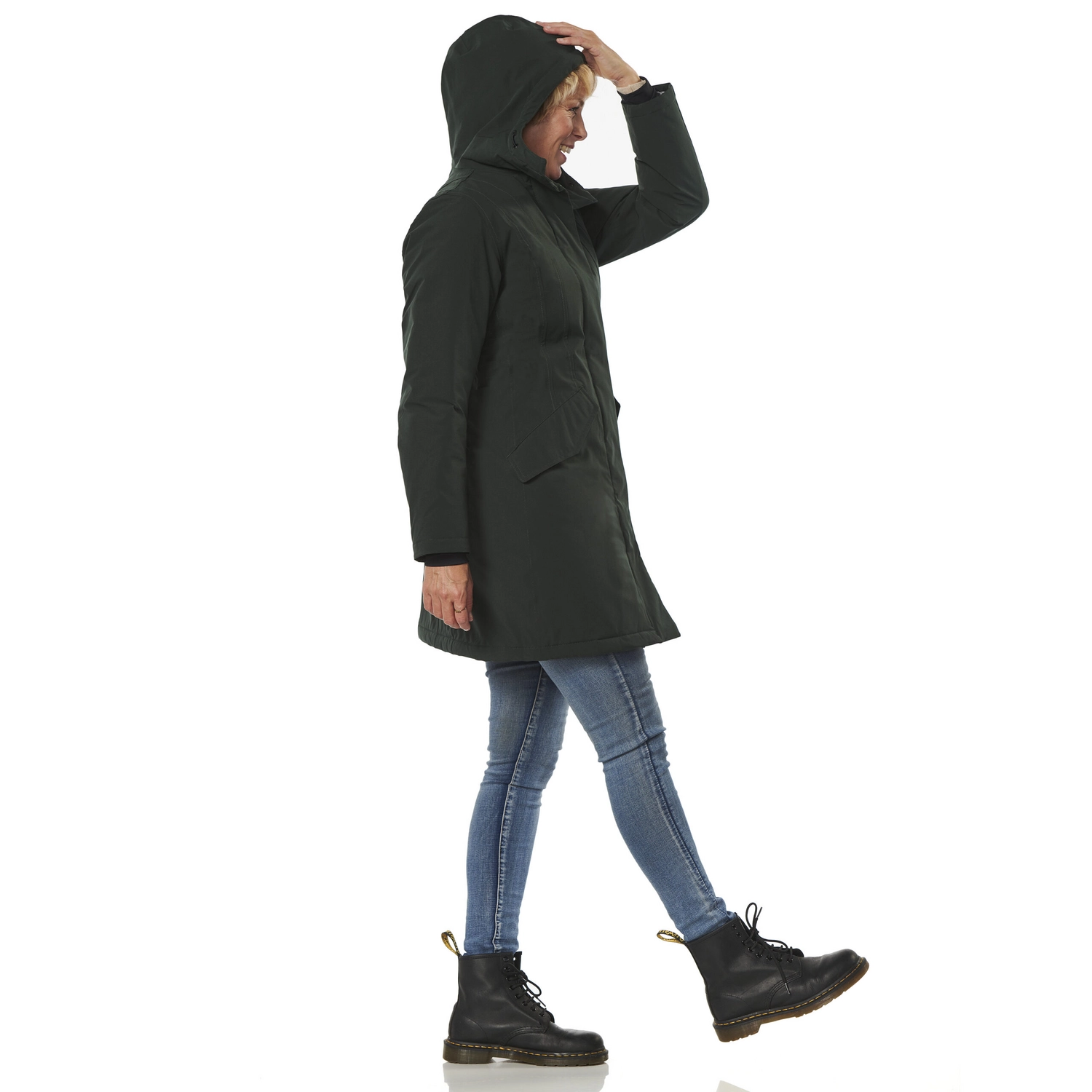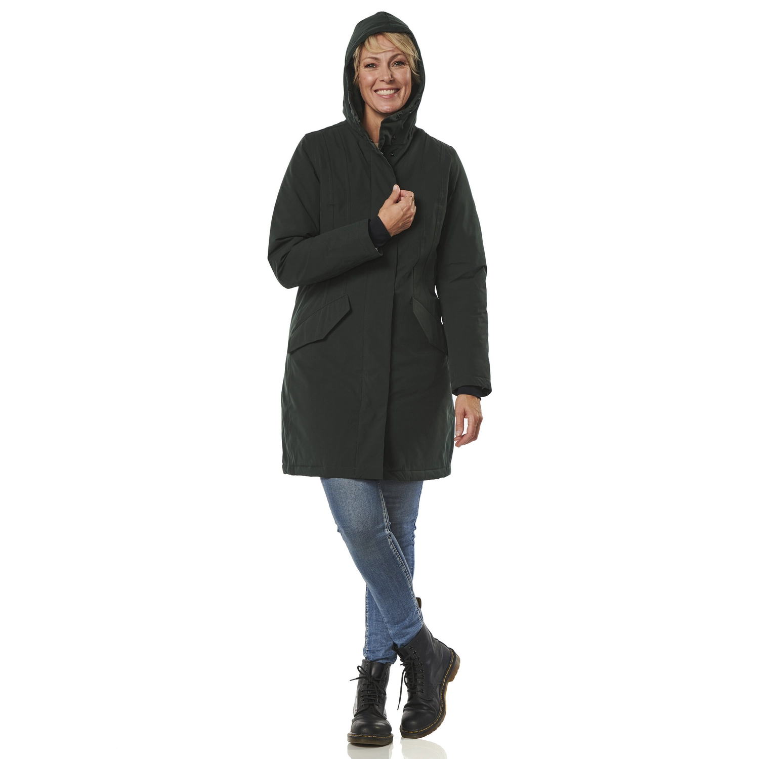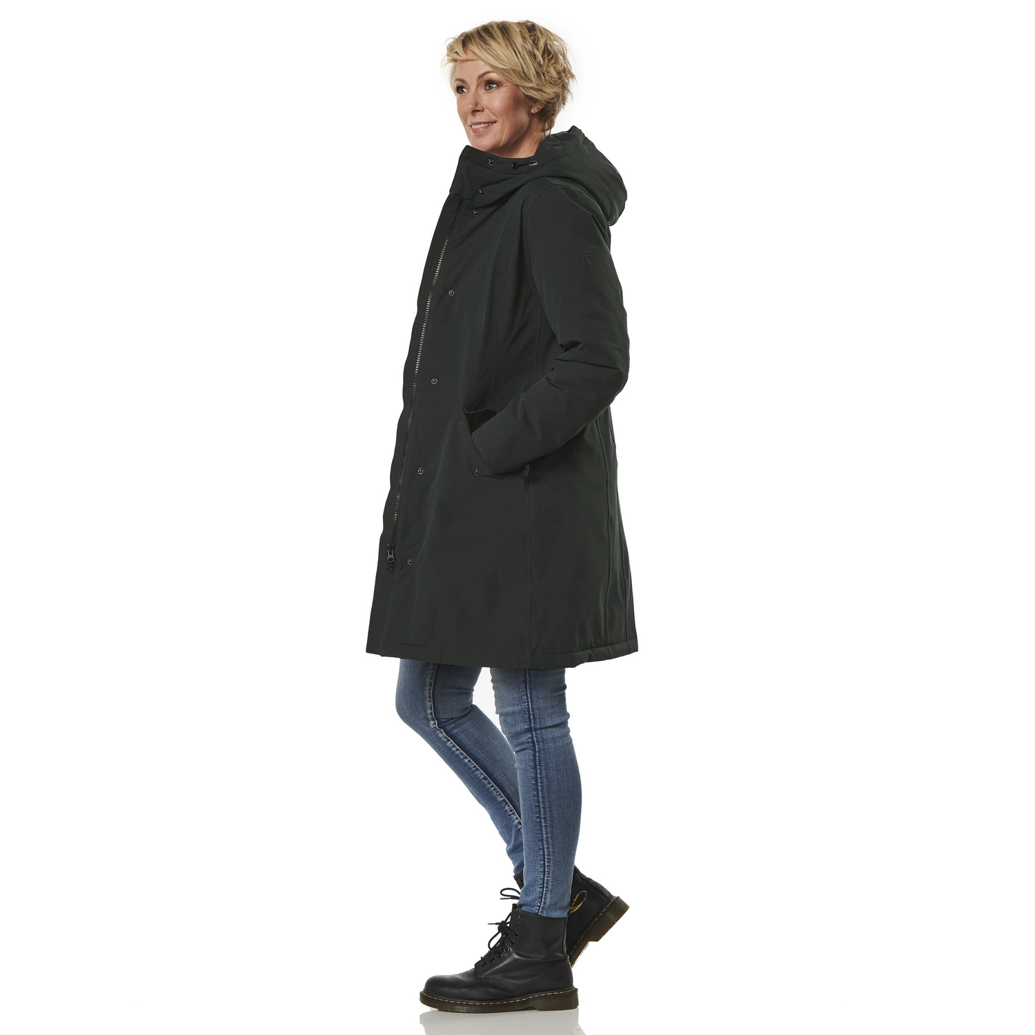 Deze stijlvolle winterjas is afkomstig van de Orlando serie van het merk Happy Rainy Days. De jas is gemaakt van 100% polyester en is waterdicht, winddicht en zeer goed ademend. Daarnaast is de jas voorzien van getapete naden en warme winterpadding, waardoor u er heerlijk comfortabel bij loopt met koud of nat weer. Verder zijn de mouwen voorzien van windvangers die inregenen tegengaan en is de capuchon verstelbaar. De jas is voorzien van een volledige ritssluiting met drukkers en de jas heeft zakken met drukkers. De Orlando winterjas valt tot net over de heup en het model kleedt mooi slank af.