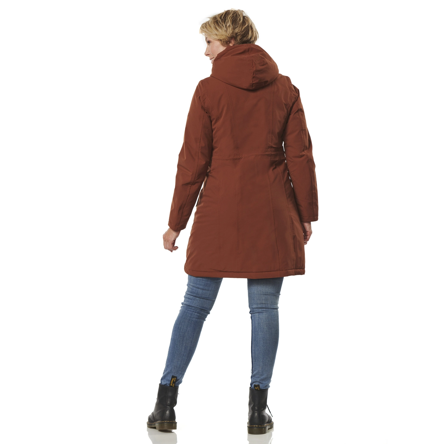 Deze stijlvolle winterjas is afkomstig van de Orlando serie van het merk Happy Rainy Days. De jas is gemaakt van 100% polyester en is waterdicht, winddicht en zeer goed ademend. Daarnaast is de jas voorzien van getapete naden en warme winterpadding, waardoor u er heerlijk comfortabel bij loopt met koud of nat weer. Verder zijn de mouwen voorzien van windvangers die inregenen tegengaan en is de capuchon verstelbaar. De jas is voorzien van een volledige ritssluiting met drukkers en de jas heeft zakken met drukkers. De Orlando winterjas valt tot net over de heup en het model kleedt mooi slank af.